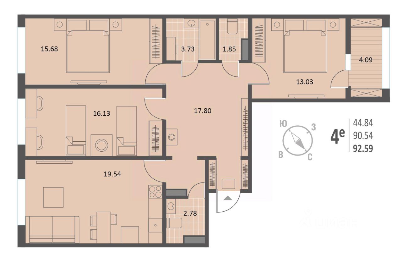 Продаётся 3-комнатная квартира в сданном доме (Краснознамённая, 72), срок сдачи: IV-кв. 2025, общей площадью 92.68 кв.м., на 4 этаже. Жилой комплекс расположен в Ленинском районе Воронежа, в 5 минутах от Цирка, на пересечении улиц Краснознаменная и Чапаева. В шаговой доступности школа и детские сады, а на первом этаже жилого дома предусмотрено помещение под продуктовый супермаркет и другие коммерческие площади.