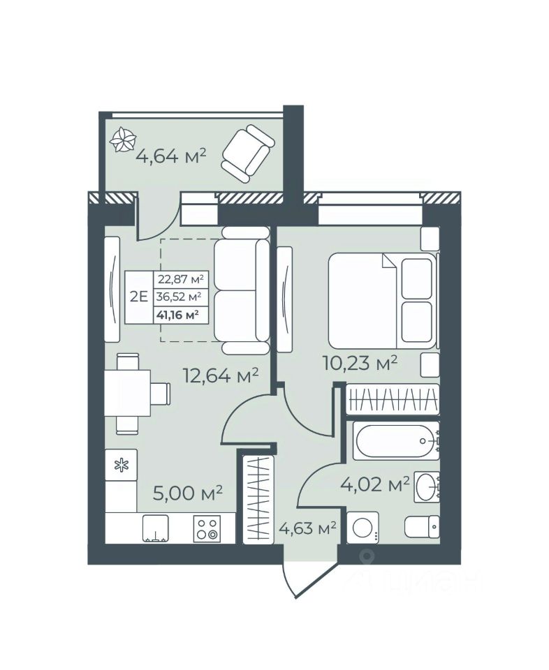 Общая площадь41,16 м²