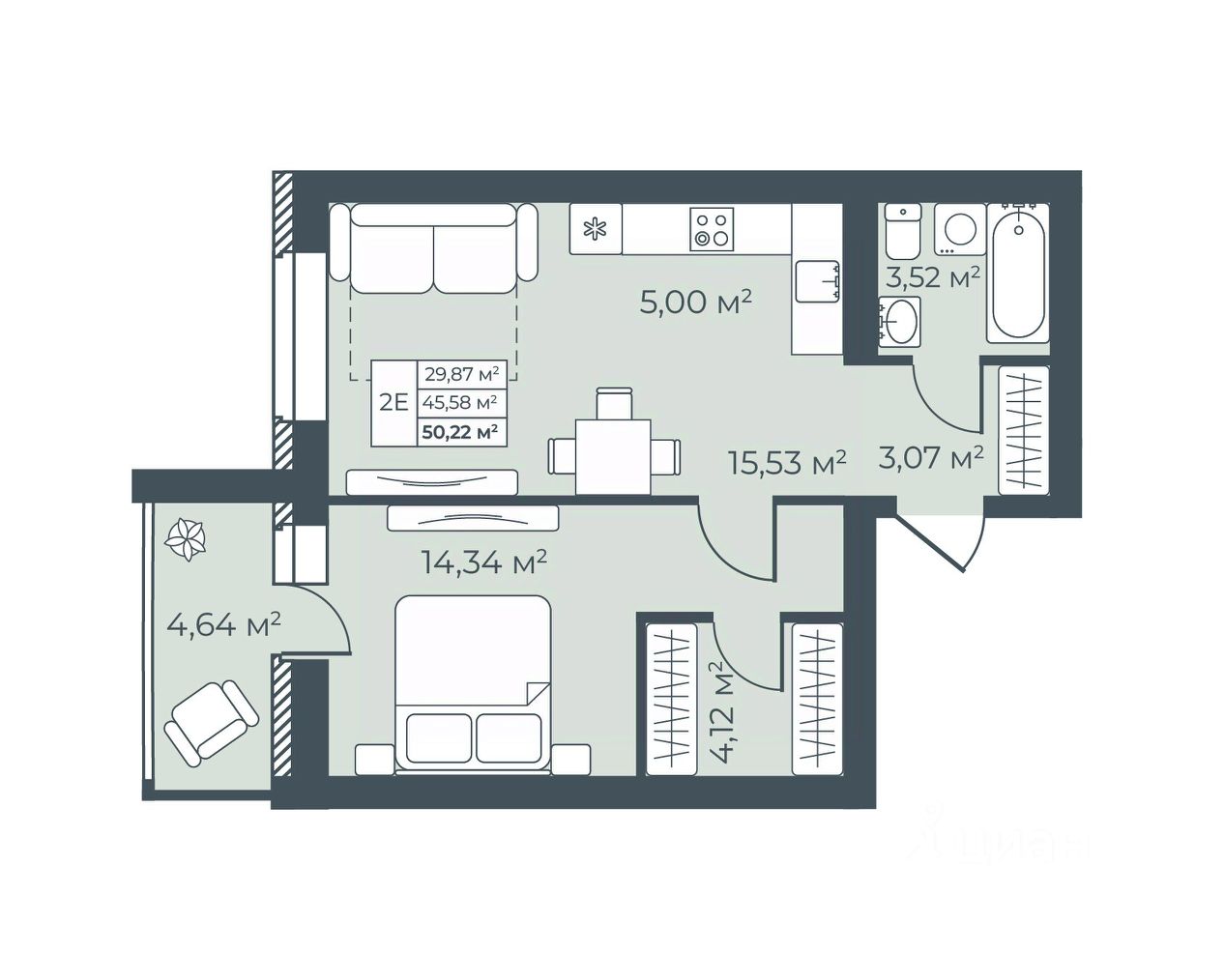 Общая площадь50,22 м²