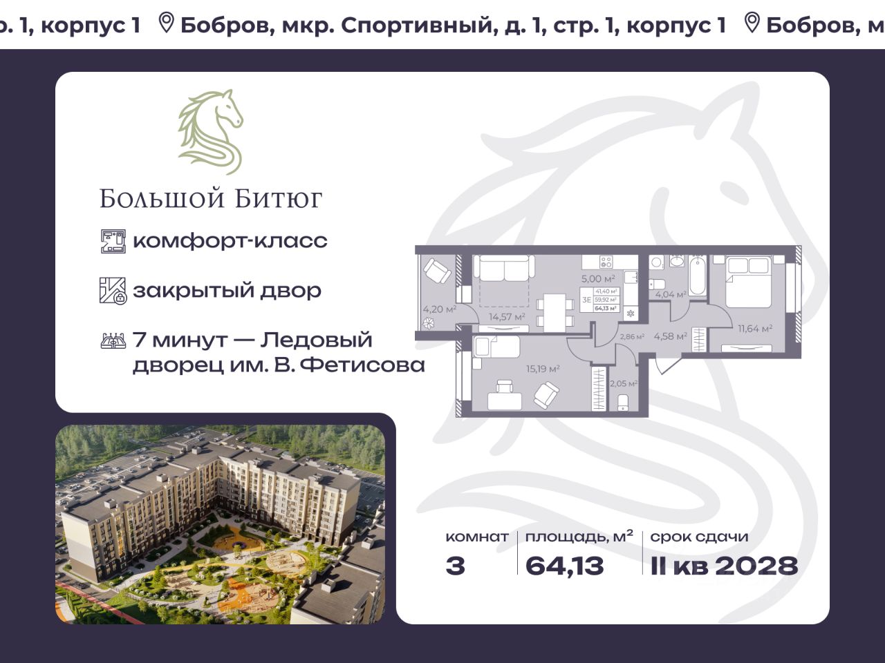 Общая площадь64,13 м²