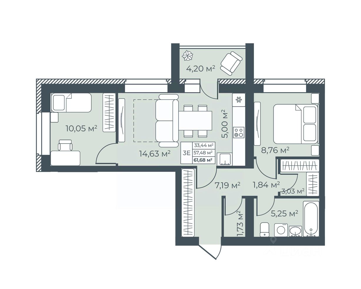 61,68 м²