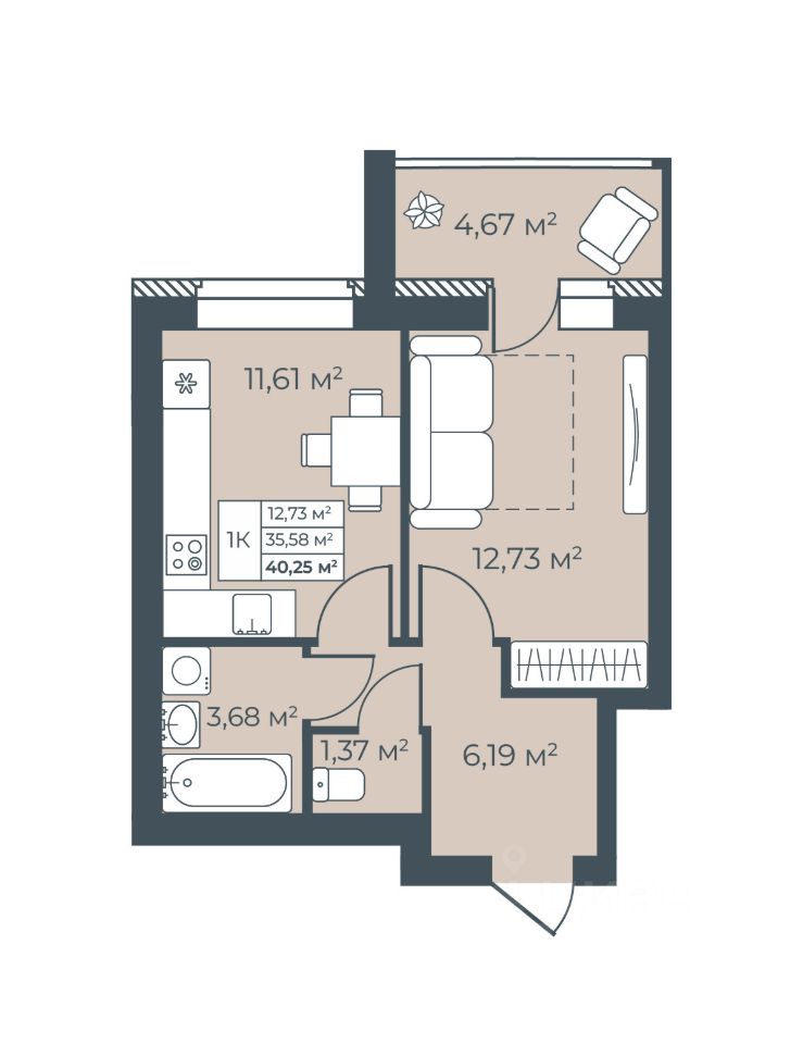 Общая площадь40,25 м²