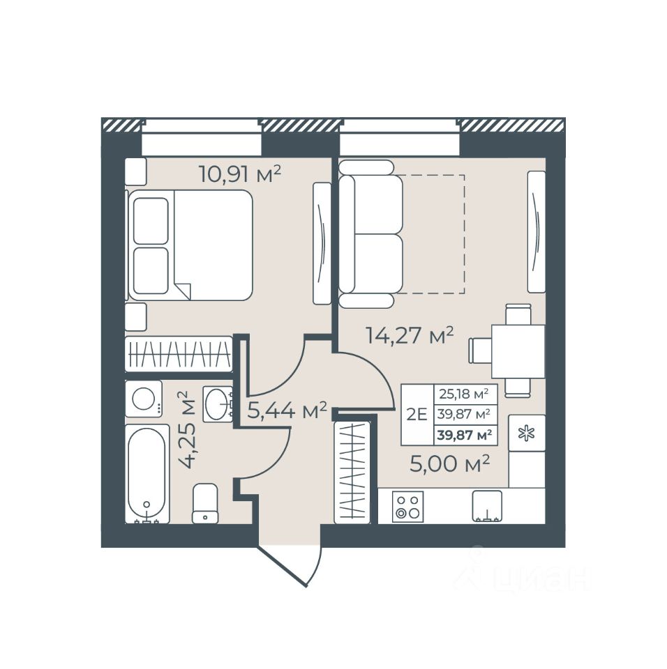 39,87 м²