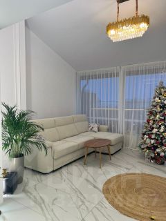 В квартире две полноценные спальни, кухня-гостиная 35м, две вместительные гардеробные, просторная терраса из лиственницы с возможностью сделать бассейн, высокие потолки больше 4м. Большой тамбур на две квартиры, соседи хорошие люди, бонусом к квартире идут два подсобных помещения на этаже.