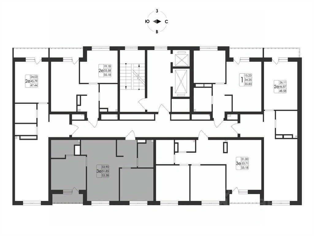 Общая площадь53,38 м²