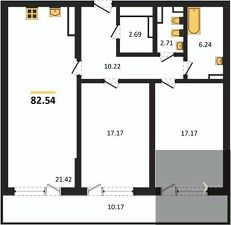 Квартира: 2 к 82,54 кв.м., 7 этаж в комплексе Бунин, 3 очередь, корп.1 (Секции 6,7), сдача: 2кв. , этажей: 23, адрес Воронеж г., Московский пр., д. 136, Застройщик: ВДК.