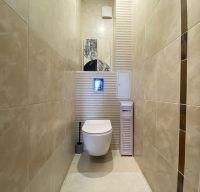 - на полу в комнатах и прихожей качественный ламинат, в санузлах керамическая плитка