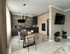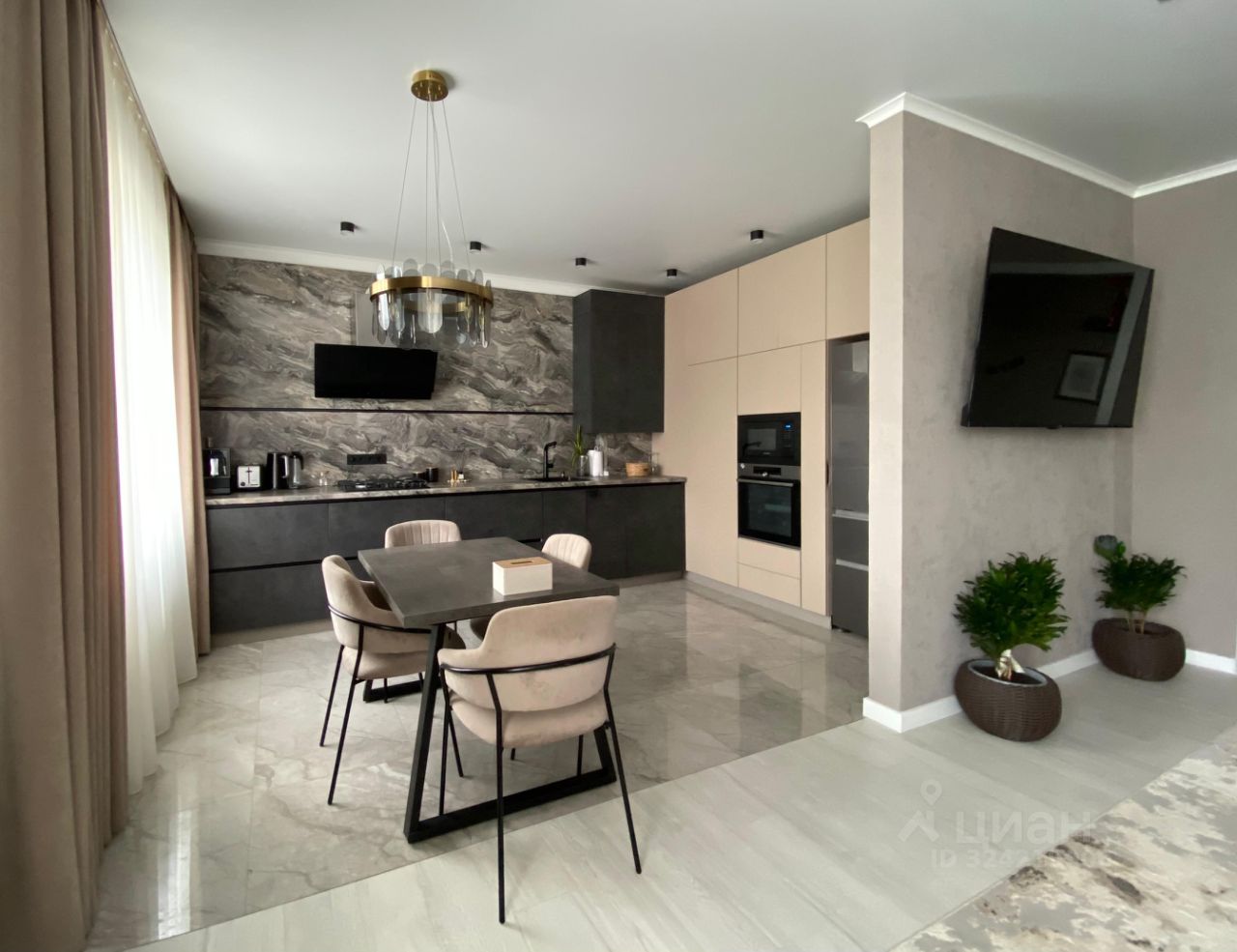 Кухонный гарнитур с встроенной техникой и столовой группой останется новому владельцу.
