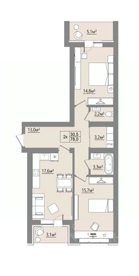 Продаётся 2-комнатная квартира в строящемся доме (Дом 5), срок сдачи: IV-кв. 2025, общей площадью 73.9 кв.м., на 2 этаже. Новый жилой комплекс "Микрорайон Благодатный" от Специализированного застройщика "ВИТ-СТРОЙ" расположен по адресу: Воронежская обл., с. Ямное, по ул. Графа Орлова.