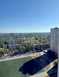 Квартира расположена на 25 этаже, благодаря чему открывается прекрасный вид на город. Несомненным плюсом станет то, что окна квартиры выходят на футбольное поле, а значит остальные дома расположены позади и не мешают обзору.