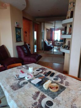 -В квартире сделана функциональная перепланировка (узаконена)- одна из комнат объединена с кухней в единое пространство площадью 31, 6 кв. мет.; санузел совмещён( 7,4 кв. мет.); две изолированные спальни; огромный холл( 8,7 кв. мет.). Состояние жилое, кухонный гарнитур, один шкаф-купе остаются новым жильцам, остальные предметы мебели по договорённости. Балкона нет, окна на две стороны.
