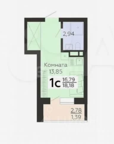Студия с предчистовой oтдeлкoй от застройщика.