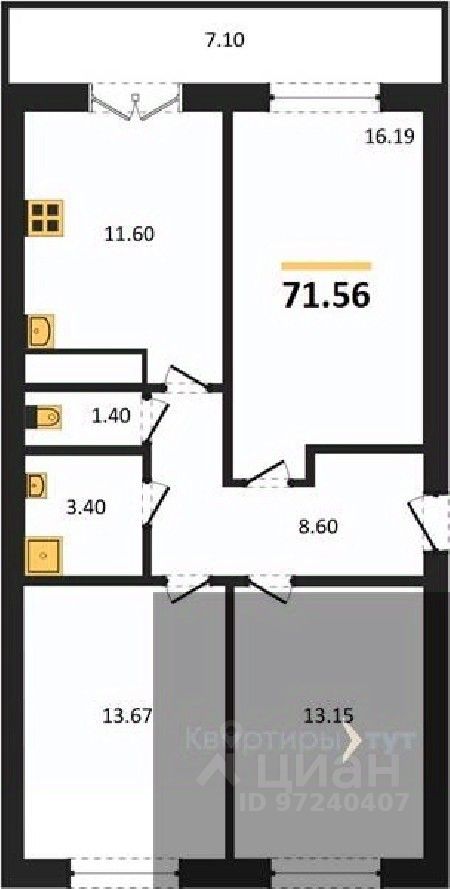 Квартира: 3 к 71,56 кв.м., 6 этаж в комплексе Ю, 1 очередь, корп.1, сдача: 4кв. , этажей: 15, адрес Воронеж г., Цимлянская ул., д. 10в, Застройщик: Еврострой.