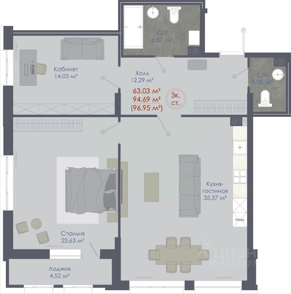 Продаётся 3-комнатная квартира в сданном доме (Любы Шевцовой, 31), срок сдачи: IV-кв. 2024, общей площадью 96.95 кв.м., на 3 этаже. Новый жилой комплекс "А-Центр" от группы компаний "Семья" расположен по адресу: г. Воронеж, по ул. Генерала Перхоровича.