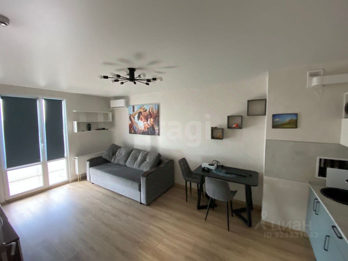 Удобная планировка: Несмотря на компактность, в студии продумано всё до мелочей: есть место для кухни, сна и отдыха. Очень функционально и уютно.