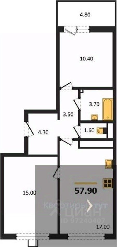 Квартира: 2 к 57,90 кв.м., 15 этаж в комплексе Городские истории, 2 очередь, корп.6, сдача: 4кв. , этажей: 17, адрес Воронеж г., Труда пр., , Застройщик: ДСК.