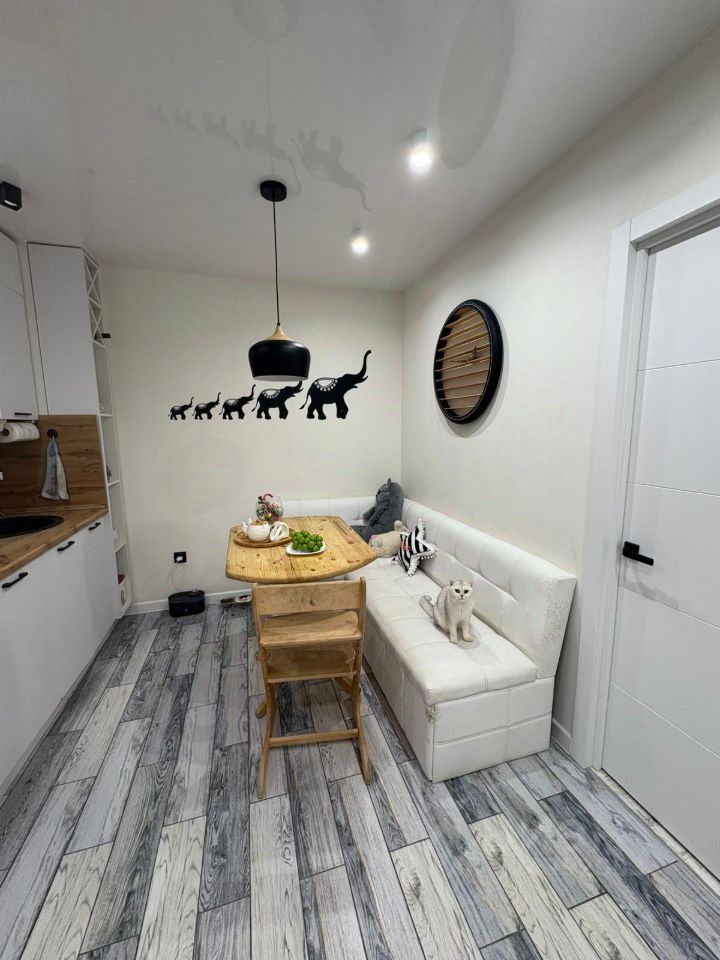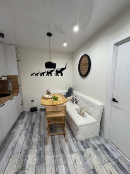 В квартире выполнен качественный ремонт: шумоизоляция, во всех комнатах на полу ламинат, горизонтальная система отопления, обои под покраску, натяжной потолок, европейская сантехника, теплый пол на кухне.