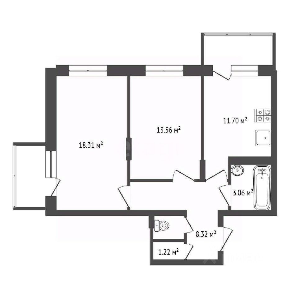 -2 комнаты по 18,31м и1 3,56м, соответственно