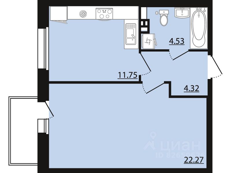 Общая площадь43,79 м²