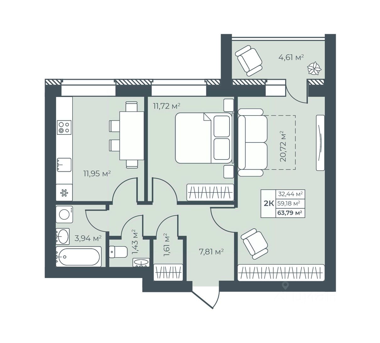 Продаётся 2-комнатная квартира в строящемся доме (Дом 3), срок сдачи: I-кв. 2027, общей площадью 63.79 кв.м., на 5 этаже. Новый жилой комплекс комфорт-класса "Ботаника Парк" от застройщика "БМ-Групп" в городе Павловск.