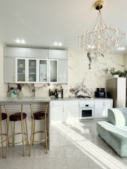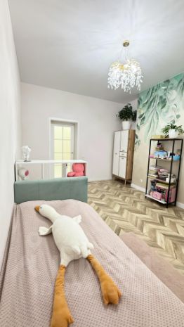На первом уровне — две уютные спальни и стильная кухня-гостиная с 3-метровыми потолками. Дизайнерский ремонт в стиле современная классика, вся техника и мебель (включая просторные шкафы-купе) остаются новым хозяевам.