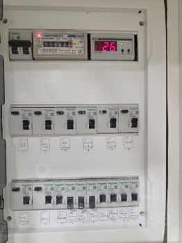 Электрика Schneider. Проводка в квартире полностью заменена. Установлено реле защиты от скачков напряжения и УЗО. Розетки и выключатели Legrand.