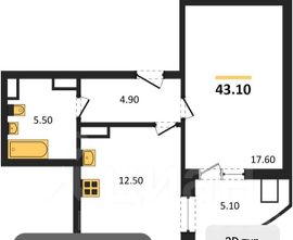 Квартира: 1 к 43,10 кв.м., 6 этаж в комплексе Ласточкино, адрес Воронеж г., Полковника Богомолова ул., д. 1, Застройщик: ДСК.