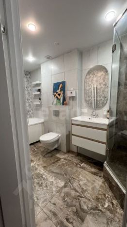 Квартира, как с каритнки, высокие потолки, лепнина, уютная кухня-гостиная с видом на город (20кв), две изолированные спальни, одна (11кв) с двумя окнами, одна (19кв) с прекрасной гардеробной, также в квартире есть большая ванная, которая вмещает еще и душевую кабину.