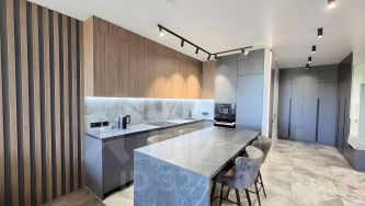 B peмoнте использованы дорoгие кaчеcтвенные материалы, итальянская плитка на полу и в санузле, мебель изготовлена на заказ. В прихожей встроенные шкафы для хранения гардероба, в кухне гостинной большая обеденная зона, встроенные варочная панель, холодильник, духовой шкаф, микроволновка и др., большой телевизор, кондиционер.