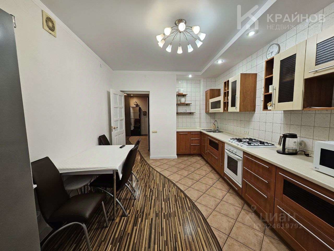 В квартире выполнен евроремонт. Все комнаты с выходом на балконы или лоджию, кухня и зал объединены большой лоджией для отдыха.