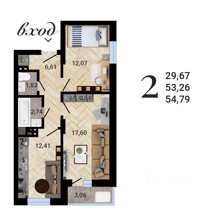 Продаётся 2-комнатная квартира в строящемся доме (Дом 1), срок сдачи: IV-кв. 2025, общей площадью 54.79 кв.м., на 26 этаже. 27-ми этажный монолитный дом (2 подъезда) будет находиться в черте города, однако его отличает очень спокойная, почти загородная атмосфера - отсутствие шума, чистый воздух, близость реки Дон (15 мин. езды на автомобиле)