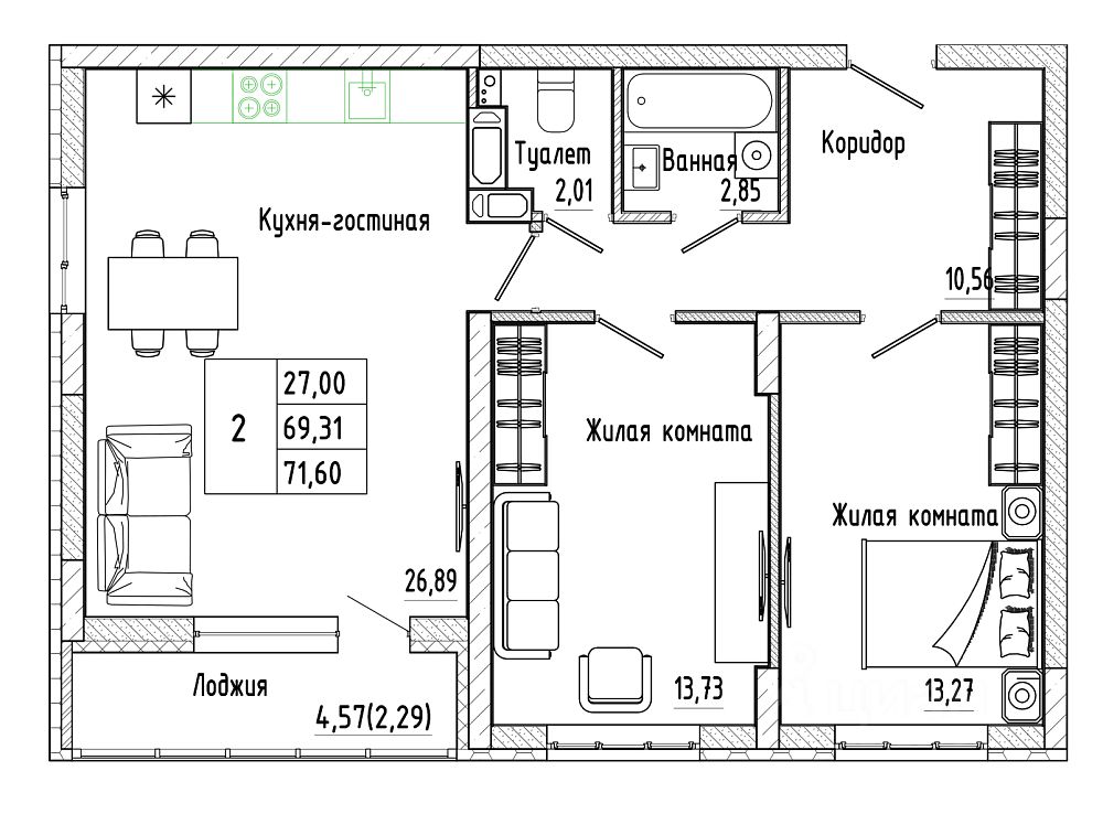 Продаётся 2-комнатная квартира в строящемся доме (Дом 2), срок сдачи: II-кв. 2029, общей площадью 71.6 кв.м., на 9 этаже. Жилой комплекс "Алые паруса" представляет собой 19-этажный жилой дом на улице Мопра, 16 вблизи парка "Алые паруса".