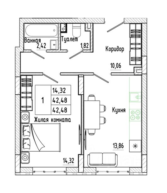 Продаётся 1-комнатная квартира в строящемся доме (Дом 2), срок сдачи: II-кв. 2029, общей площадью 42.48 кв.м., на 2 этаже. Жилой комплекс "Алые паруса" представляет собой 19-этажный жилой дом на улице Мопра, 16 вблизи парка "Алые паруса".