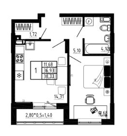 Продаётся 1-комнатная квартира в строящемся доме (Дом 2), срок сдачи: II-кв. 2029, общей площадью 38.33 кв.м., на 10 этаже. Жилой комплекс "Алые паруса" представляет собой 19-этажный жилой дом на улице Мопра, 16 вблизи парка "Алые паруса".
