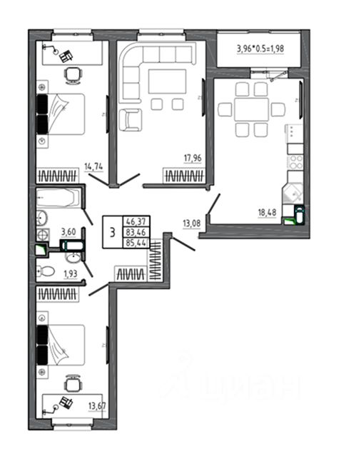 Продаётся 3-комнатная квартира в строящемся доме (Дом 2), срок сдачи: II-кв. 2029, общей площадью 85.44 кв.м., на 5 этаже. Жилой комплекс "Алые паруса" представляет собой 19-этажный жилой дом на улице Мопра, 16 вблизи парка "Алые паруса".