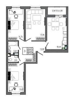 Продаётся 3-комнатная квартира в строящемся доме (Дом 2), срок сдачи: II-кв. 2029, общей площадью 85.44 кв.м., на 13 этаже. Жилой комплекс "Алые паруса" представляет собой 19-этажный жилой дом на улице Мопра, 16 вблизи парка "Алые паруса".