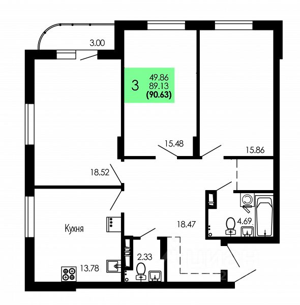 Продаётся 3-комнатная квартира в строящемся доме (Дом 1, дом 2), срок сдачи: I-кв. 2027, общей площадью 90.63 кв.м., на 9 этаже. Новый жилой комплекс от группы компаний "Проект Инвест" расположен по адресу: г. Воронеж, по ул. Шишкова.