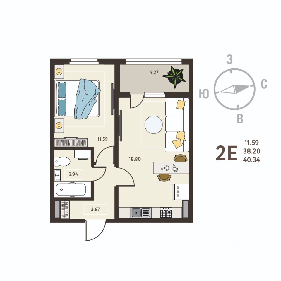 Продаётся 1-комнатная квартира в строящемся доме (Позиция 13), срок сдачи: IV-кв. 2025, общей площадью 40.34 кв.м., на 3 этаже. О ПРОЕКТЕ