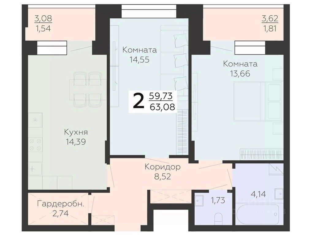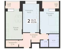 Общая площадь63,08 м²