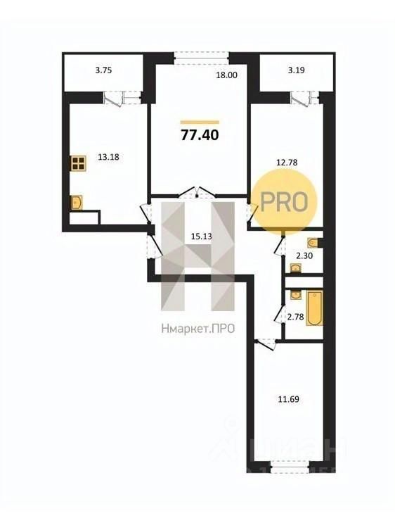 Общая площадь77,4 м²
