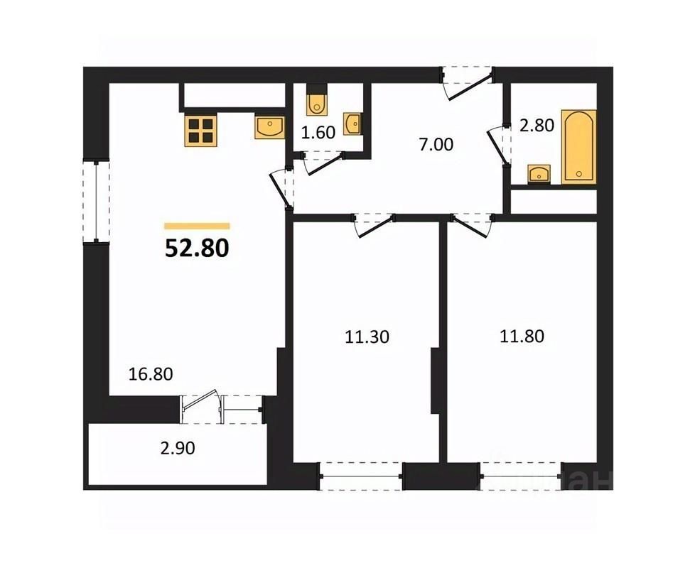 Общая площадь52,8 м²