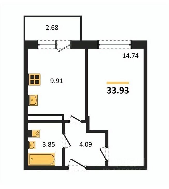Общая площадь33,93 м²