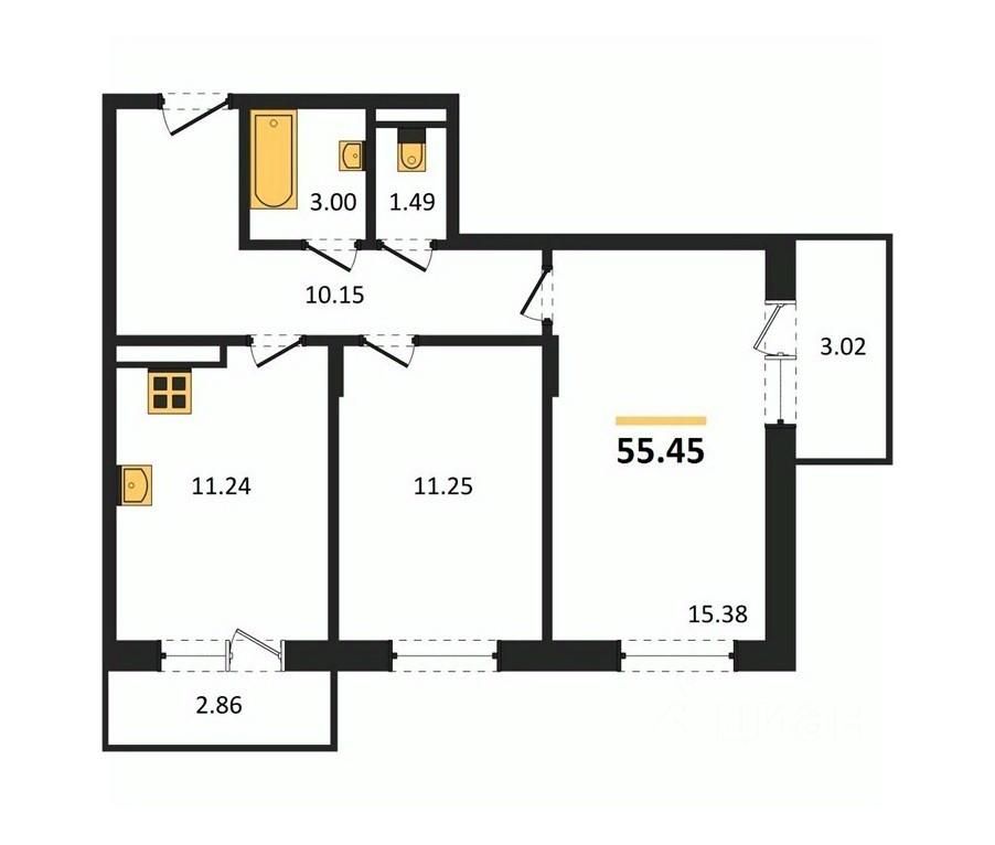 Общая площадь55,45 м²