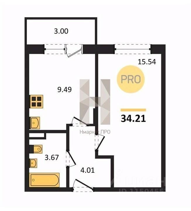Общая площадь34,21 м²