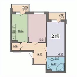 Продается 2-комн. квартира, 61,75 м²