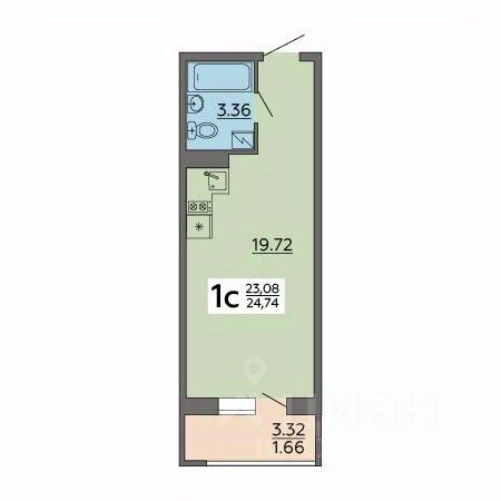 Общая площадь24,74 м²