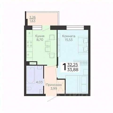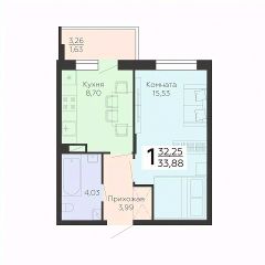 Общая площадь33,88 м²