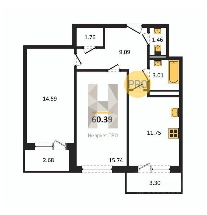 Общая площадь60,39 м²