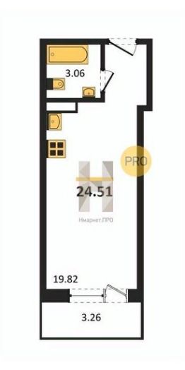 Общая площадь24,51 м²