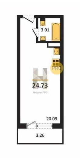 Общая площадь24,73 м²
